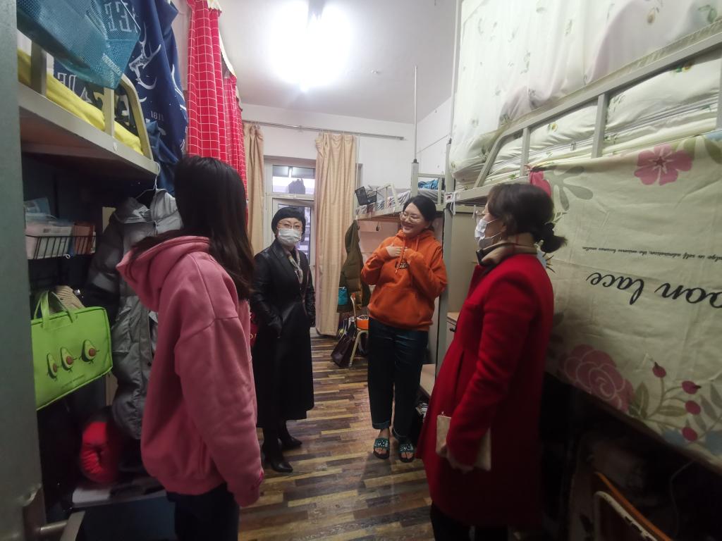 直属党支部书记郝利群、院长薛晓芃、副院长吕平共同走访学生宿舍。