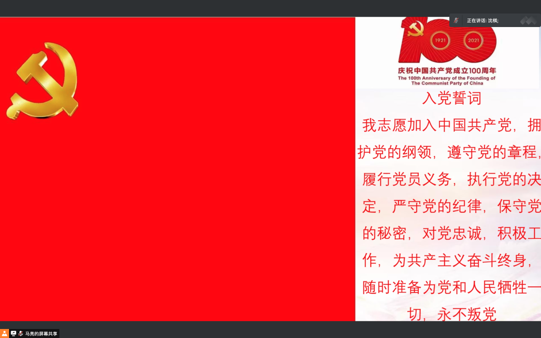 直属党支部书记带领转正党员和新接纳的预备党员庄严宣誓。郝利群书记对转正党员和新接纳的预备党员提出殷切希望。希望全体同志按照党章严格要求自己,深入开展党史学习教育,以转正、入党为契机,加强政治理论学习,进一步在学习、生活、思想上加入党组织,更好地发挥党员先锋模范作用,为社会做出更大贡献,努力成长为一名合格党员。