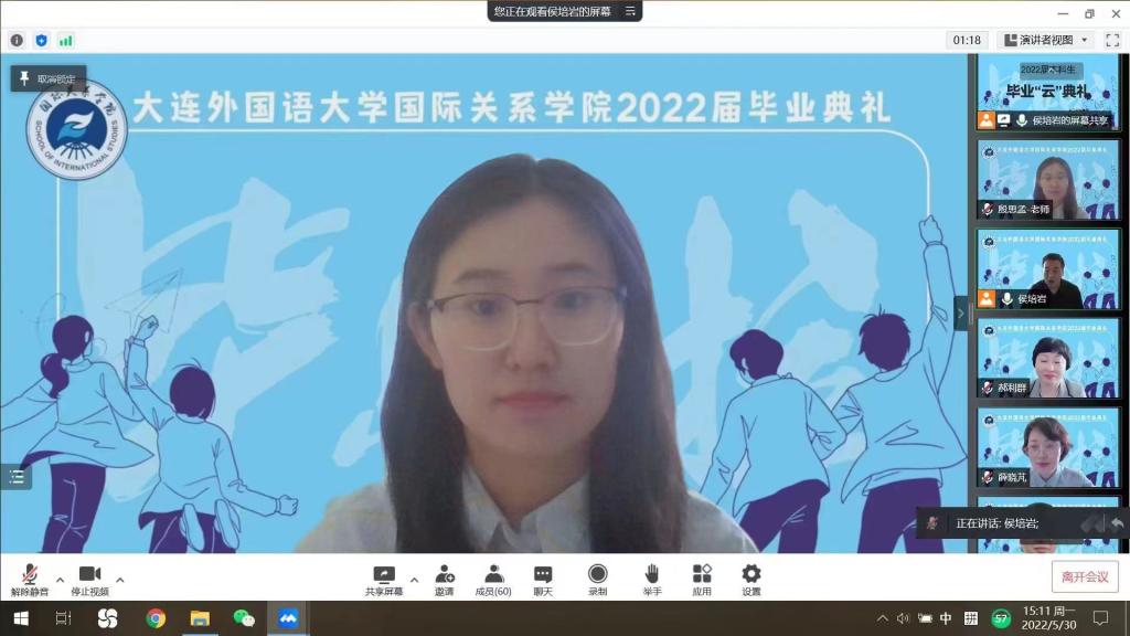 首先,郝利群向毕业生致辞,谈到虽然由于疫情无法重聚,但相聚云端同样令人欣喜;表达对各位同学的不舍与期盼;希望同学们继续奋斗,迎难而上,在自信的同时要谦虚谨慎,永远保持学习热情。