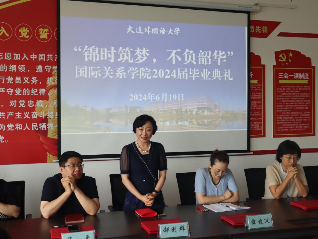 首先,郝利群向毕业生致辞。她热烈祝贺学生顺利毕业,并向辛勤付出的师生家长致谢。她希望毕业生能不断坚定理想信念、丰厚思想、肩负起使命,实现人生价值,并祝大家鹏程万里,前程锦绣。