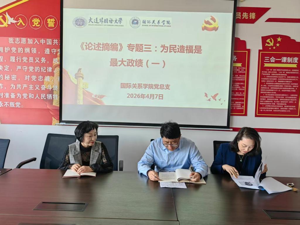 处级领导干部树立和践行正确政绩观学习教育读书班于11B537党员活动室开展第四次集中学习,专题学习《习近平关于树立和践行正确政绩观论述摘编》中“为民造福是最大政绩”相关内容。东北亚研究院副院长吕平领学,党总支书记郝利群、院长薛晓芃参加学习。