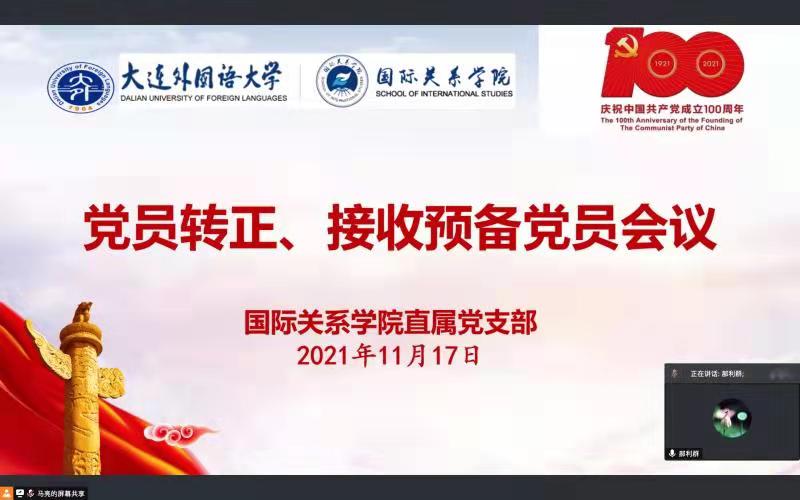 直属党支部在线召开党员转正、接收预备党员大会,全体教工党员、学生(预备)党员参加会议。会议由体育博彩平台大全