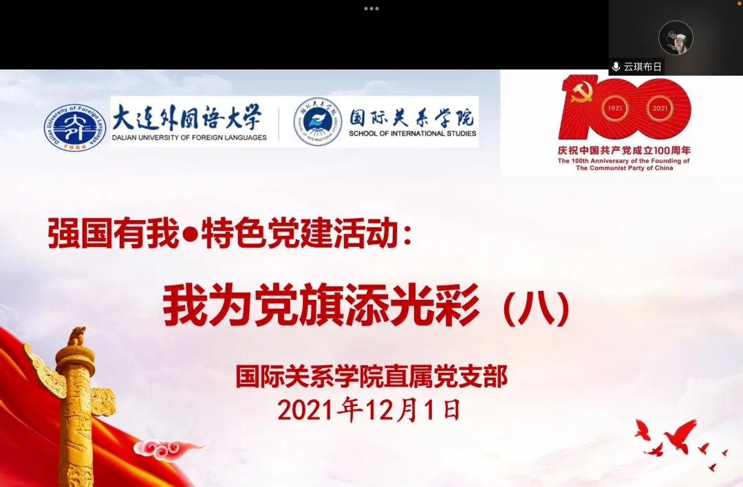 在特色党建活动“强国有我·我为党旗添光彩”(第八期)中,2019级预备党员云琪布日同学发言。她谈到,新时代的大学生热烈似朝阳,处在人生最好时节的我们应该满载光辉。不仅要努力学习专业知识,将理论应用于实践,以坚定的理想信念和远大的宏图之志激励自己,承担起青年人的使命与责任,在建成社会主义现代化强国,实现中华民族伟大复兴的接力跑中,青年一代努力跑出更好的成绩,不负党的期望、人民期待、民族重托,不负伟大的时代。