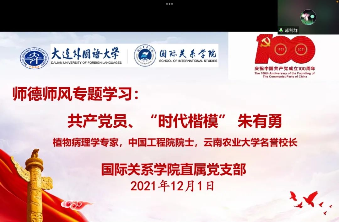 在师德师风专题学习环节,师生党员以视频形式共同学习了植物病理学专家、中国工程院院士、云南农业大学名誉校长朱有勇的先进事迹。