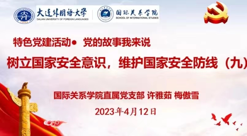 在4月15日全民国家安全教育日即将到来之际,在特色党建活动“党的故事我来说”中,许雅茹、梅傲雪以“梳理国家安全意识,维护国家安全防线”为题做发言。她们介绍了党在四个不同时期国家安全的发展历史,提出作为新时代的公民要牢固树立国家总体安全观;保持清醒头脑,长存忧患意识;加强国家安全相关法律知识学习;以实际行动积极维护国家安全利益。会上,参会同志还集体收看了国家安全教育宣传片。
