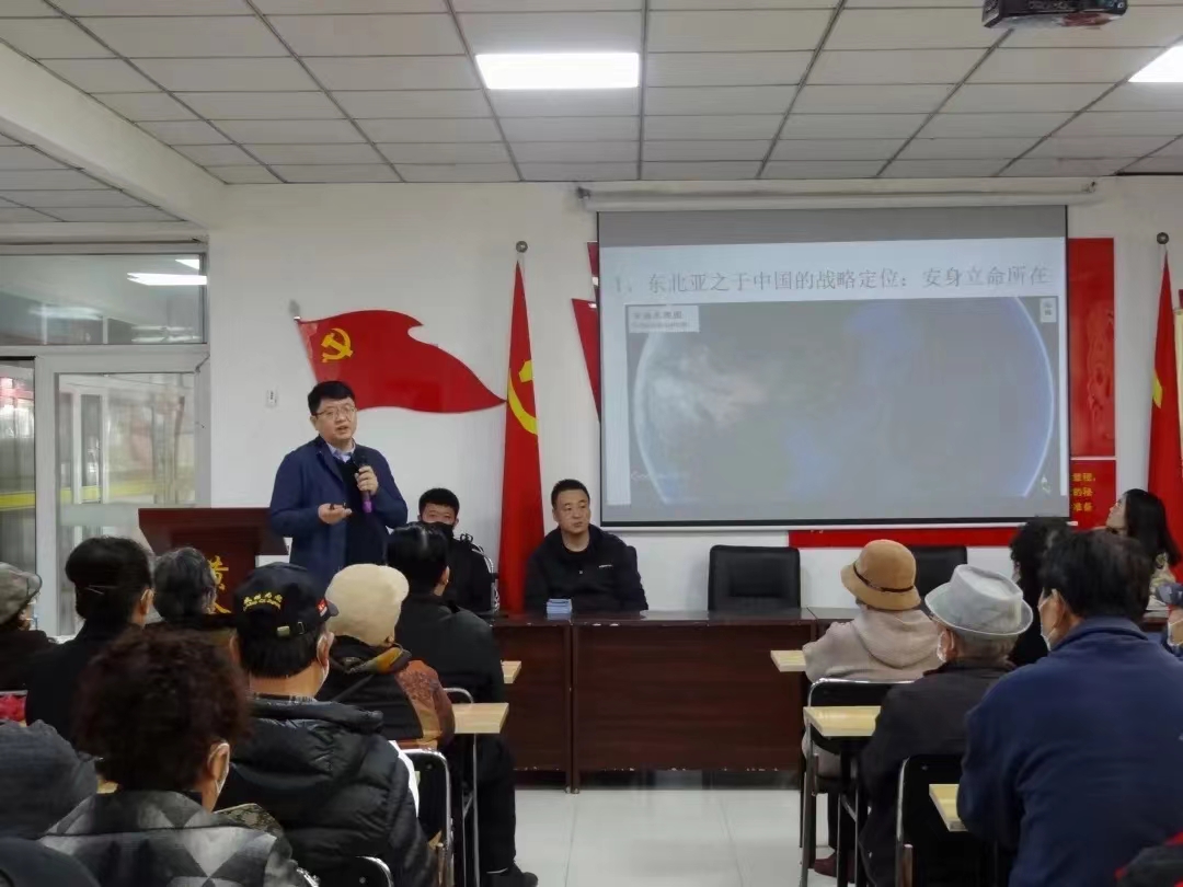 活动伊始,吕平就中国及东北亚国际安全环境问题进行宣讲,呼吁要自觉提高国家安全防范意识,牢固树立总体国家安全观,做到居安思危,争做维护国家安全的示范者和引领者。接着,侯培岩为社区党员科普了有关国家安全的注意事项,并提醒应当警惕身边可能存在的、危害国家安全的风险与隐患。最后,与会人员向参加活动的社区党员分发国家安全知识宣传材料。此次宣传活动主题鲜明,生动形象,受到社区党员的欢迎。