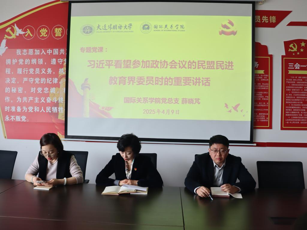首先院长薛晓芃以“习近平看望参加政协会议的民盟民进教育界委员时的重要讲话”为题上专题党课,介绍习近平总书记在2025年3月6日参加政协会议时发表重要讲话强调,强化教育对科技和人才的支撑作用,进一步形成人才辈出、人尽其才、才尽其用的生动局面。习近平总书记的重要讲话指明方向、凝聚力量,使与会师生深刻领悟到建设教育强国、科技强国、人才强国,坚持正确的办学方向,培养德智体美劳全面发展的社会主义建设者和接班人,建设人民满意的高质量的教育体系重要性。
