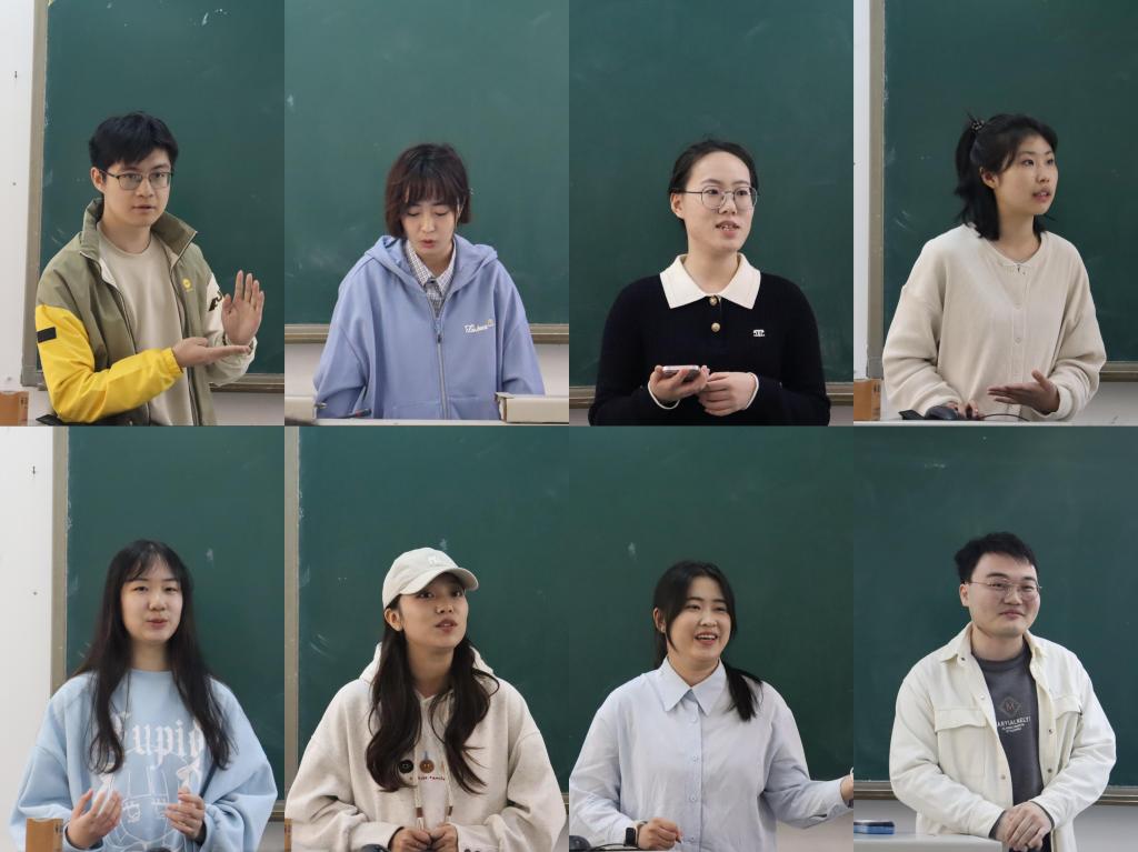 本次分享会邀请到了八名2025届优秀毕业生,分别为杨婧怡、赵佳一、高子云、刘晏辰、苗启亮、王紫璇、康释今、周云鹏同学为大家分享考研学习及择校相关的情况。