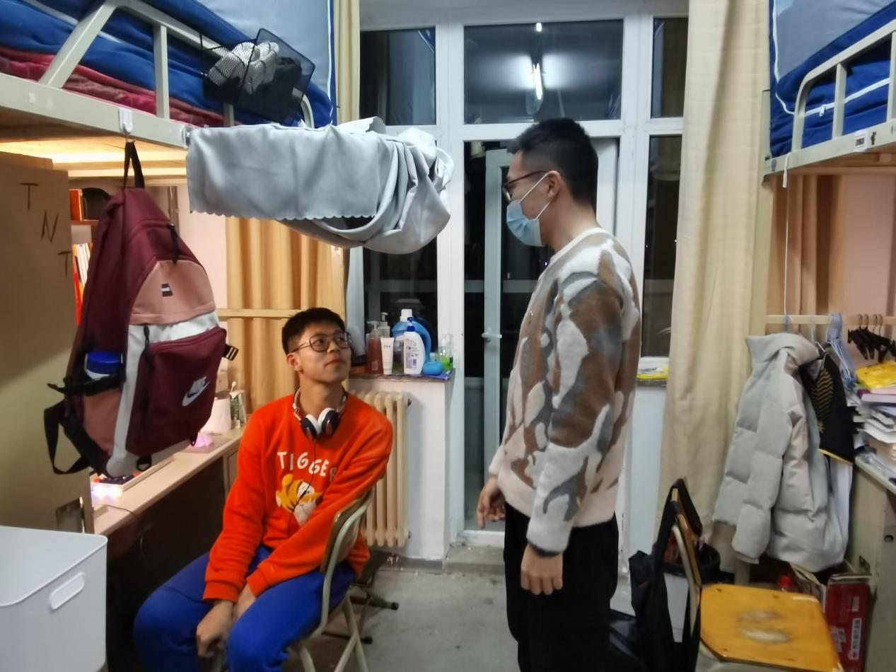 予人寓所,幽居心田。仁爱者至柔至刚,去其疾也赠其光。在病毒面前,青年志愿者们无所畏惧、勇敢坚毅;与同学们相处时,他们却竭诚相待、心细如发。高年级的志愿者在走访低年级同学寝室时,体贴入微地关心着学弟学妹们近期的学习生活状况,并做好相应的心理疏导和学业指导工作。