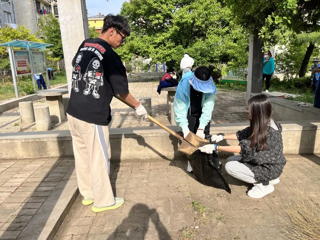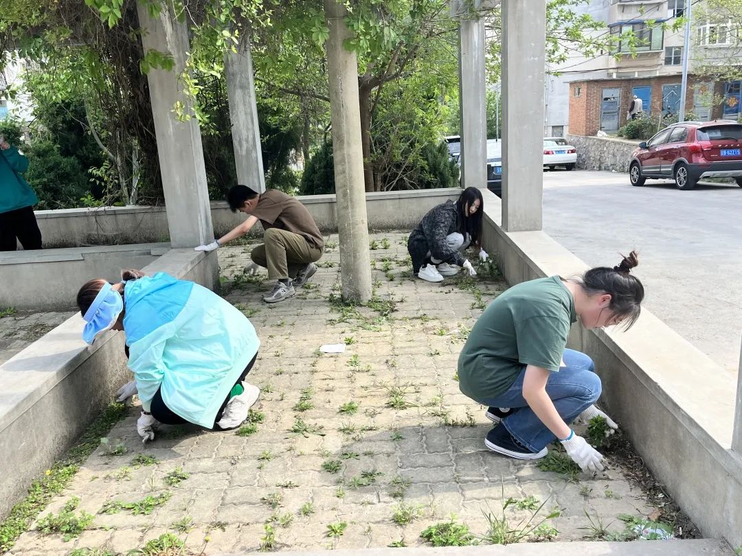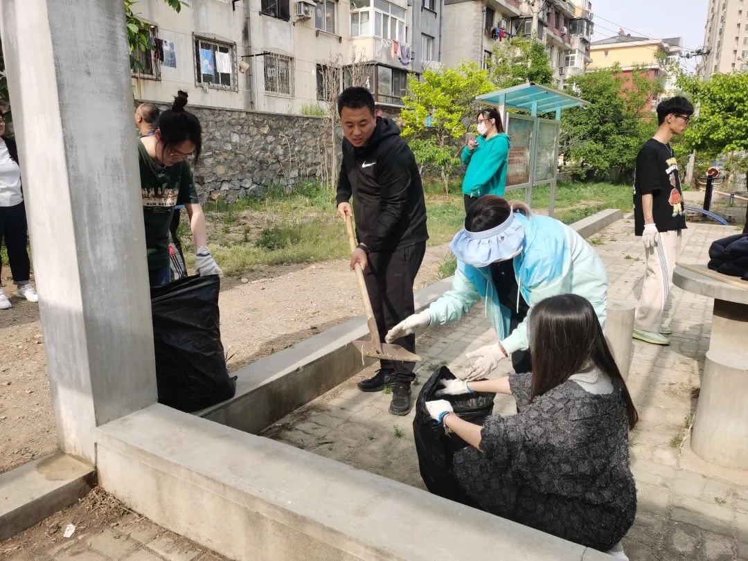 分团委书记朱林带领学生深入旅顺口区得胜街道黄金社区开展“高校社区携手行,齐力美化新花苑”劳动教育活动。