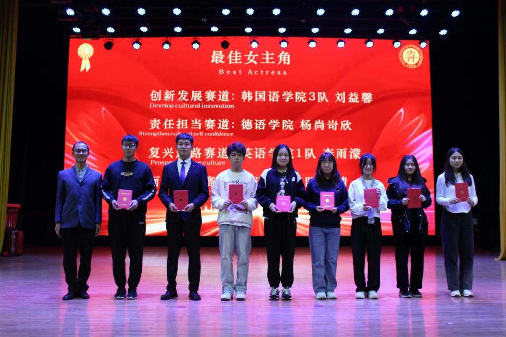一队最终在面向未来赛道中获得团体一等奖,孙钰老师获得指导老师奖,2022级孙鹏获得最佳男主角奖。