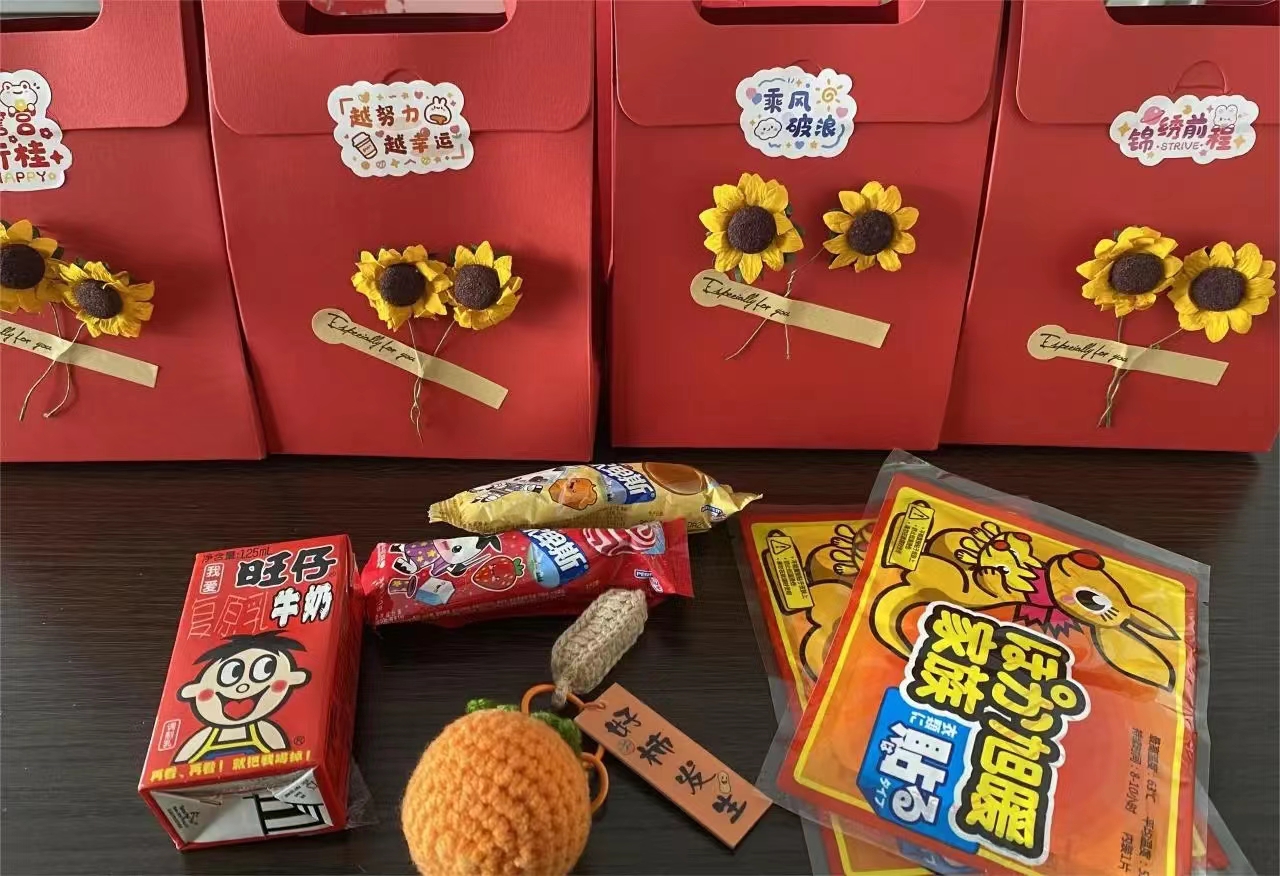 会议最后,各位领导老师向考研学生送去考前祝福,为大家发放精心准备的考研爱心礼包鼓舞士气,祝愿大家心想事成,前程似锦。