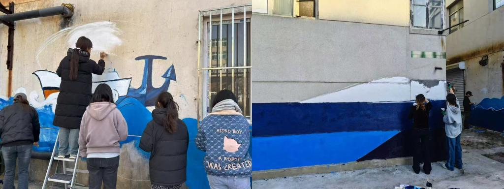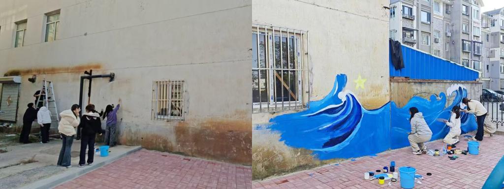 的学生,走进旅顺口区黄金社区,开展了一场别开生面的墙绘志愿服务活动。他们以画笔为工具,以墙面为画布,为社区广场倾情创作大型墙画,为社区环境增添了一道亮丽的风景线,也生动诠释了高校服务社会、实践育人的深刻内涵。