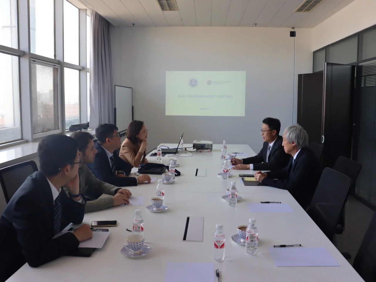 领导和老师同延世大学教授共同探讨两校线上课程合作相关事项,并针对两校科研合作等议题进行了详细的交流和磋商。