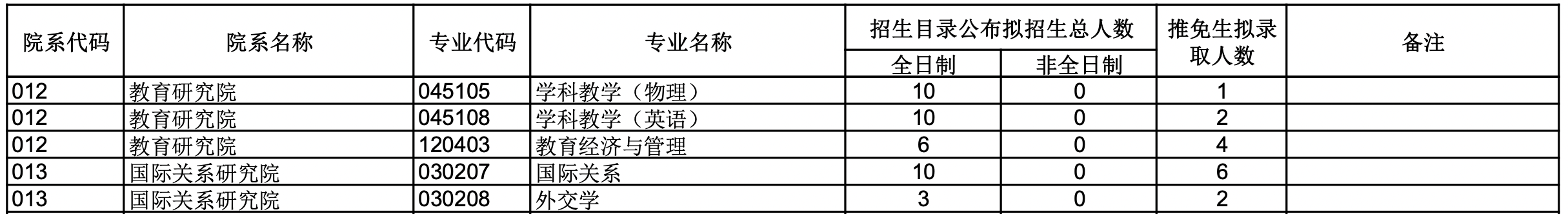 2022年硕士研究生招生目录拟招生总人数和推免生拟录取人数统计表