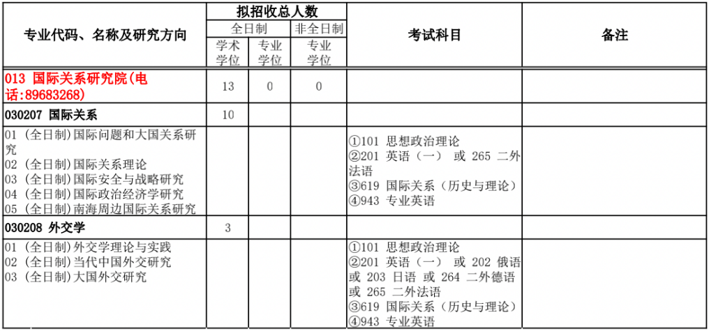 2022年全日制硕士研究生招生专业